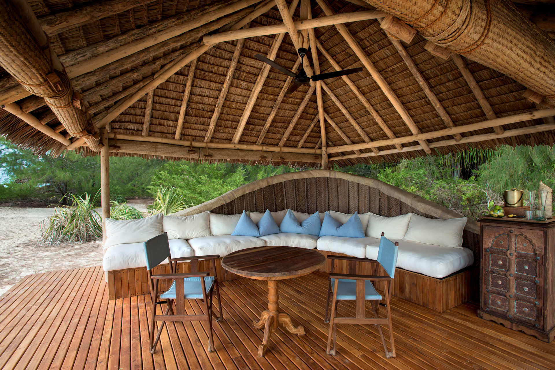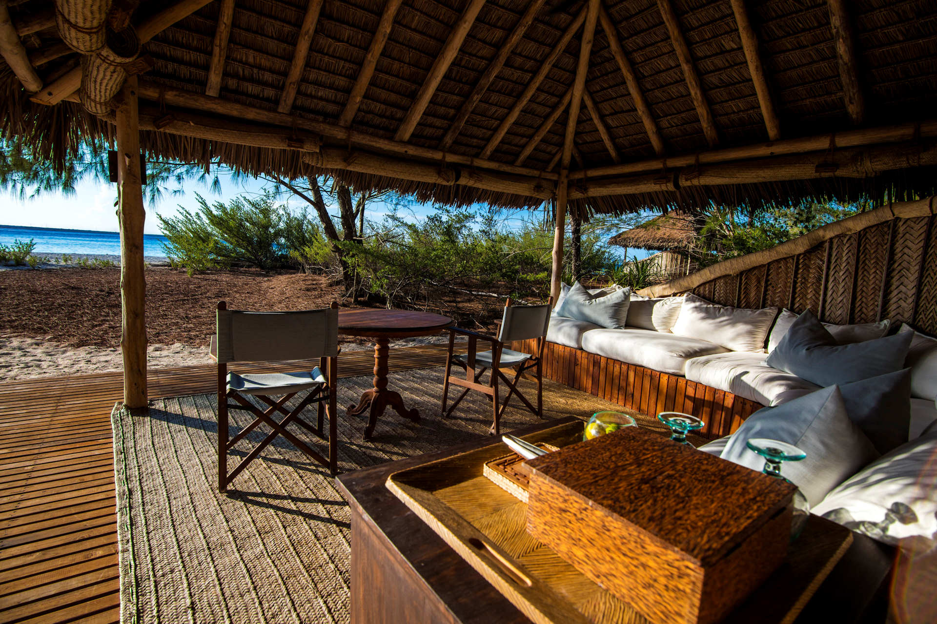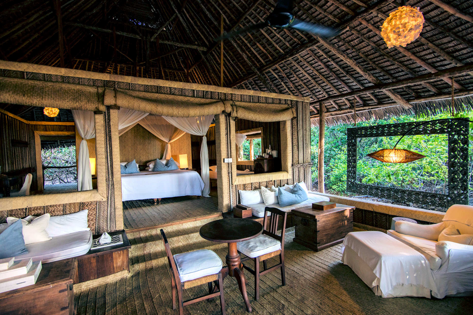 Accessible only by boat and limited to just twelve beachside bandas, this private island retreat feels like your own castaway paradise—refined, raw, and deeply personal. Thatched-roof cottages, open to the ocean breeze, blend effortlessly with the island’s natural beauty. Inside, barefoot luxury reigns: crisp linens, handcrafted touches, and panoramic views of the Indian Ocean just steps from your bed.